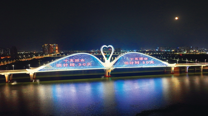 鵝城大橋亮燈喜迎十五運(yùn)會倒計(jì)時(shí)一個(gè)月